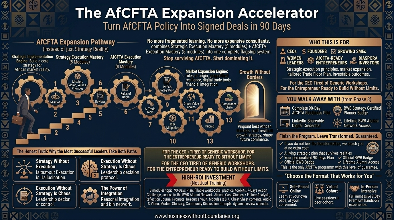 - Lifetime access to the BWB AfCFTA Strategic Alumni Network