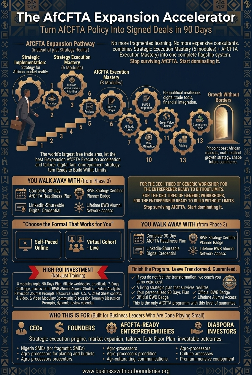 Home | About Me | Consulting & Advisory | Enterprise Growth Ecosystem |Strategic Execution Mastery | Market Expansion Mastery (AfCFTA) | Business Leadership Retreat | Coaching  | SpeakingContact